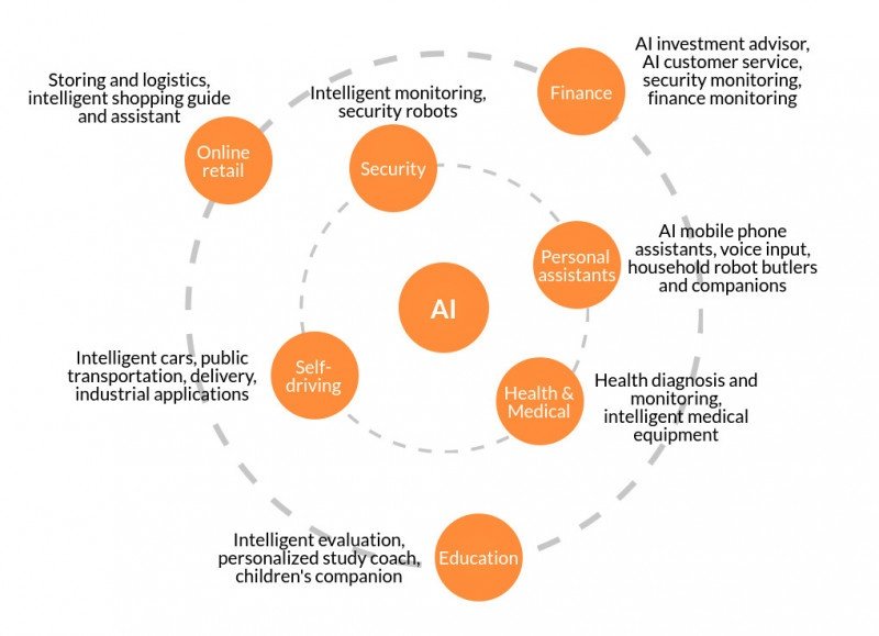 এরপরেই দ্বিতীয় অবস্থানে আছে স্ব- ড্রাইভিং এবং এসিস্টেড ড্রাইভিং। এর পরেই আছে শিক্ষা, অর্থ, উত্পাদন, নিরাপত্তা, বাড়ি এবং অন্যান্য শিল্প ।