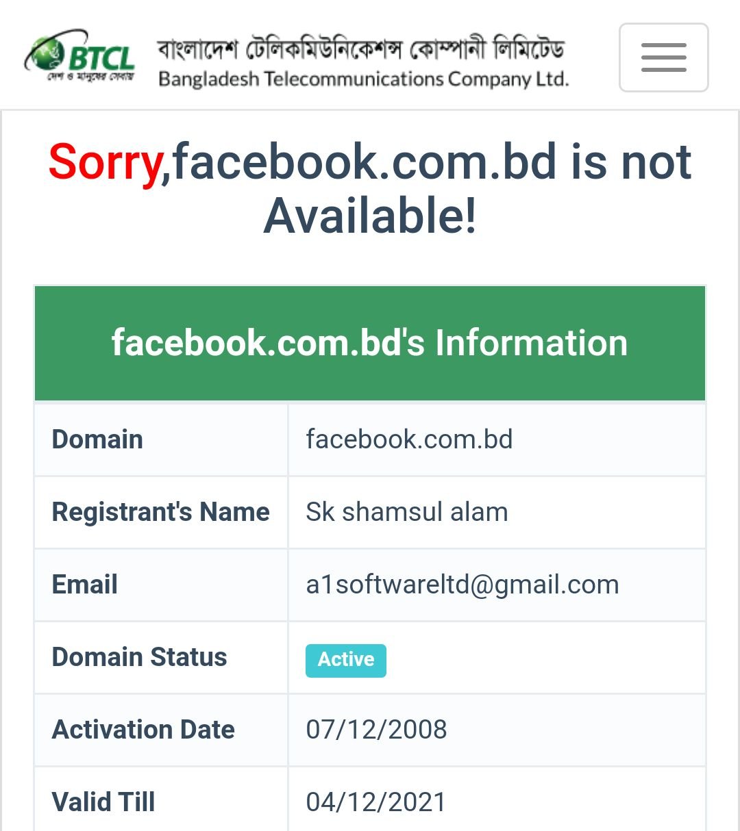 Facebook.com.bd ডোমেইন রেজিস্ট্রার করা হয় ২০০৮ সালের ৭ ডিসেম্বর