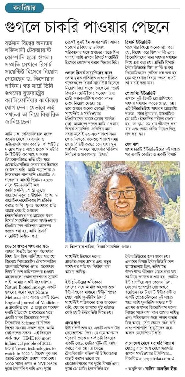 আমার গবেষণার বিষয় ও ভবিষ্যৎ পরিকল্পনার সঙ্গে গুগলের কাজে মিল থাকায় আমি গুগলে রিসার্চ সায়েন্টিস্ট হিসেবে যোগদান করার সিদ্ধান্ত নিই।