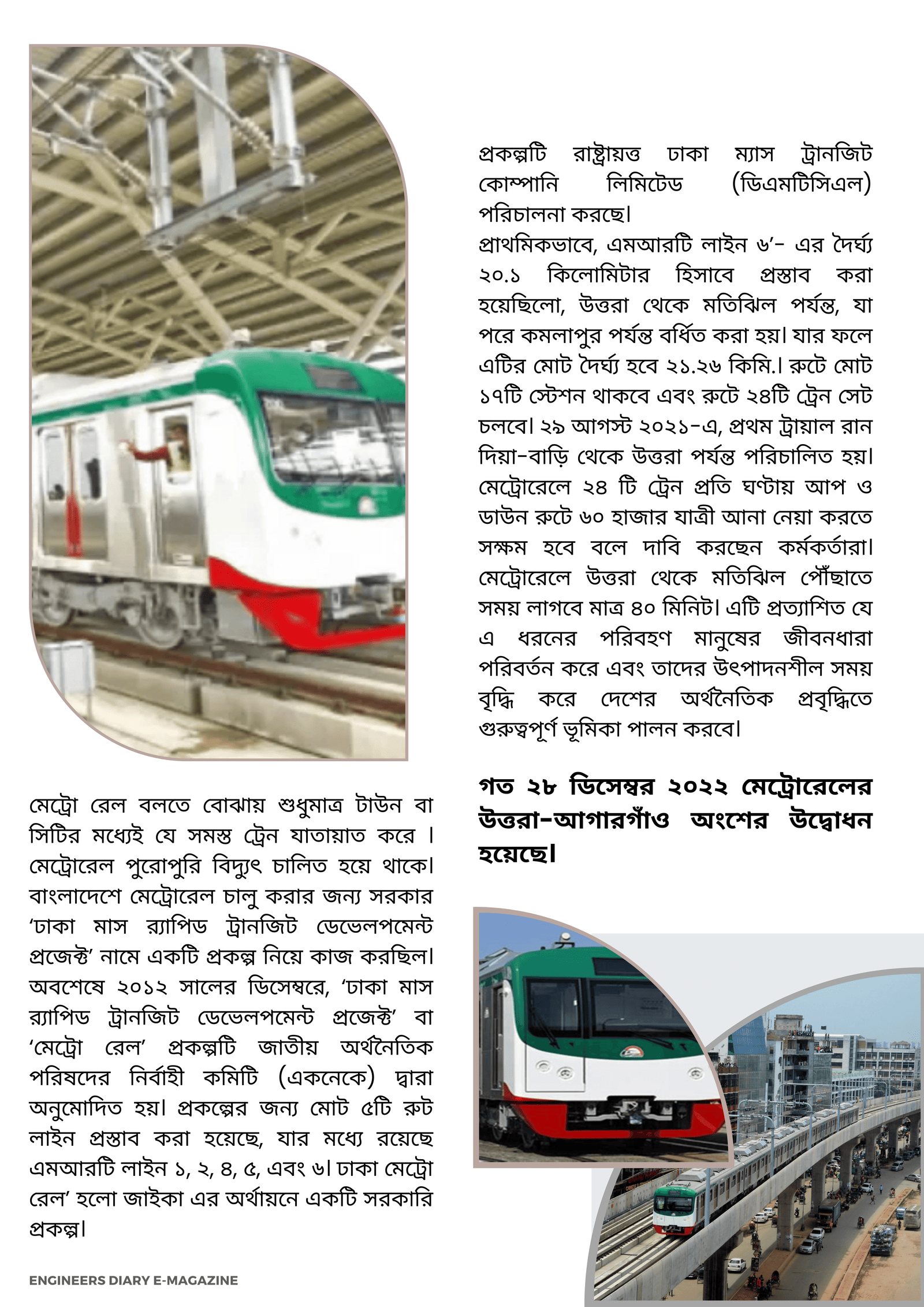 ২৮ ডিসেম্বর মেট্রোরেলের উত্তরা-আগারগাঁও অংশের উদ্বোধন করা হয়েছে।