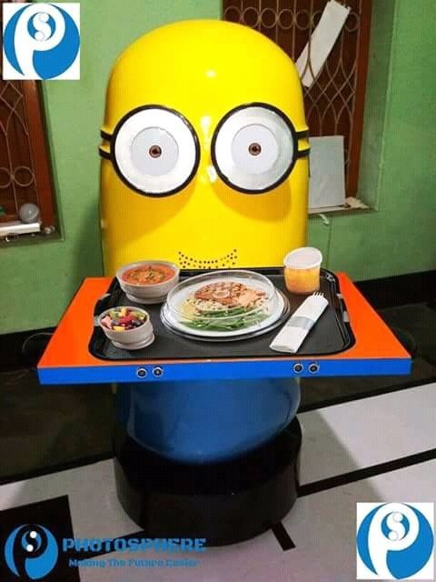 ওয়েটার রোবট “মিনিওন”। যেকোন রেস্টুরেন্টে খাবার সার্ভ করতে পারবে এমন অটোনোমাস বাংলাভাষী রোবট এর কাজ বাংলাদেশে এটাই প্রথম। সম্পূর্ণ নিজেদের হাতে তৈরী এটি কেবল একটি প্রজেক্টেই সীমাবদ্ধ নয়! এটি এখন বাণিজ্যিক ভাবে বাজারেও উন্মুক্ত করা যাবে এমনটাই বলল এ রোবট তৈরির কারিগররা।